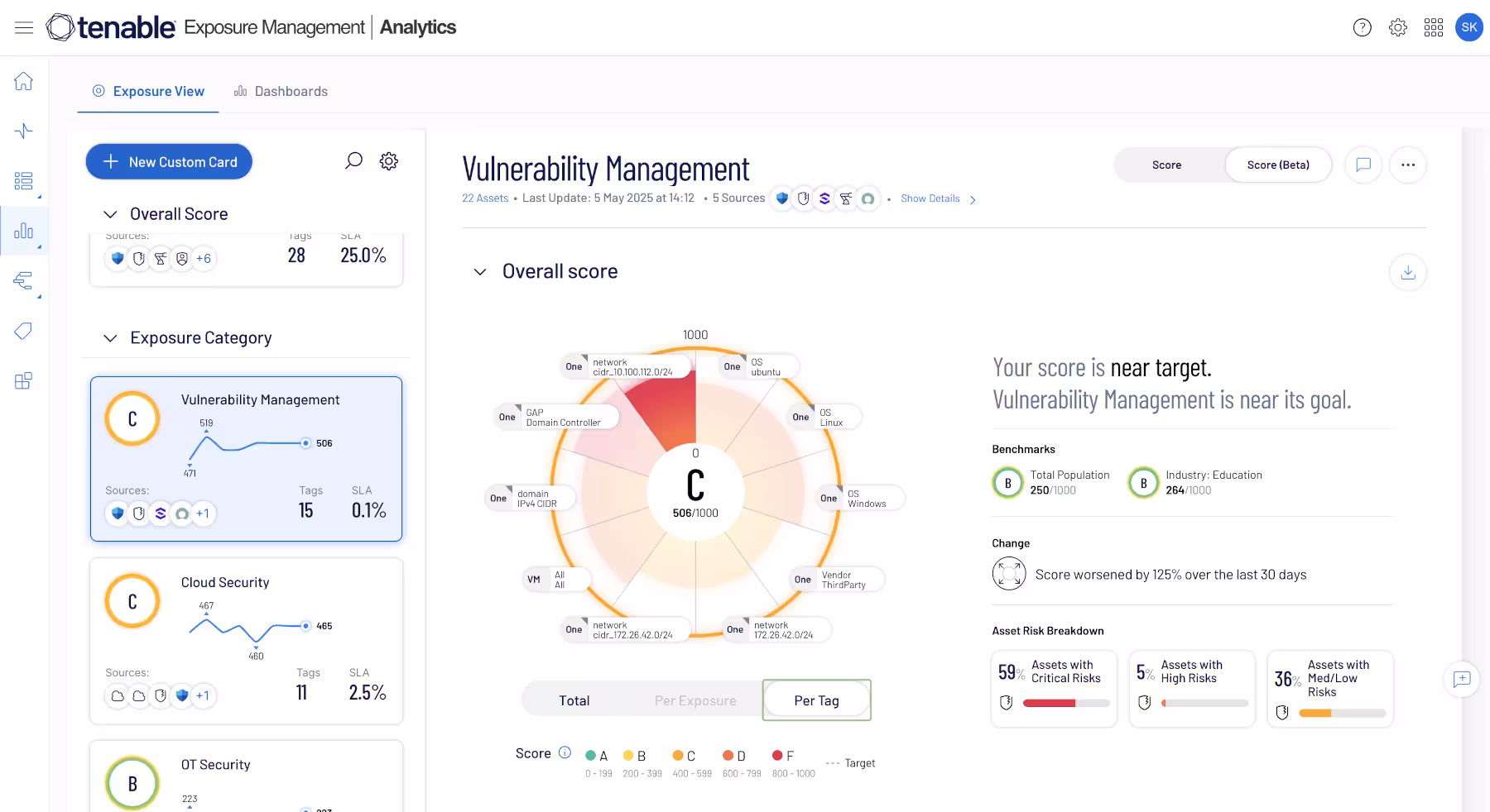 Tenable Vulnerability Management é a plataforma de gestão de vulnerabilidades baseada em risco mais adotada do mundo. Construída sobre a tecnologia Nessus — o scanner mais implantado globalmente — e gerenciada 100% na nuvem, oferece visibilidade completa sobre todos os ativos e vulnerabilidades ocultas.